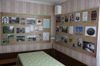 Kolmen taulun kuvakokonaisuudella Eino Leino -talolla kerrotaan Elias Lönnrotin elämästä ja elämäntyöstä.