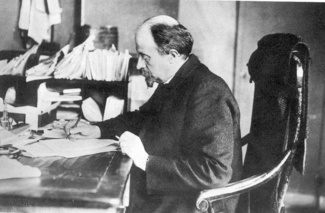 Mies vilkaisee käsikirjoitusta, riisuu takkinsa yltään ja alkaa nopeasti naputella konettaan. Tutkii paperia välillä, miettii, naputtaa, miettii ja naputtaa. Vasta tekstin loppupuolella latoja ei näytä saavan selvää. Hän vilkuilee ympärilleen, pujahtaa salaa toimitukseen ja painuu Ahon huoneeseen. Kirjailija istuu parhaillaan lukemassa.