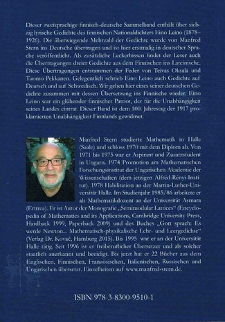 Saksalainen Manfred Stern on kääntänyt upean valikoiman Eino Leinon runoja saksaksi. Käännöskokoelma on ilmestynyt toukokuussa 2017. Onnittelemme kääntäjää. Esipuheen kirjoittanut Osmo Pekonen.