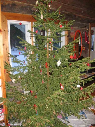 Pian on iloinen ilta mennyt, pimeänä yö laskeutuu, ja vain yksinäinen tähti tuikkii ikkunan lävitse. Kuusi seisoo tummana salissa; tonttu kulkee siellä hiljaa.